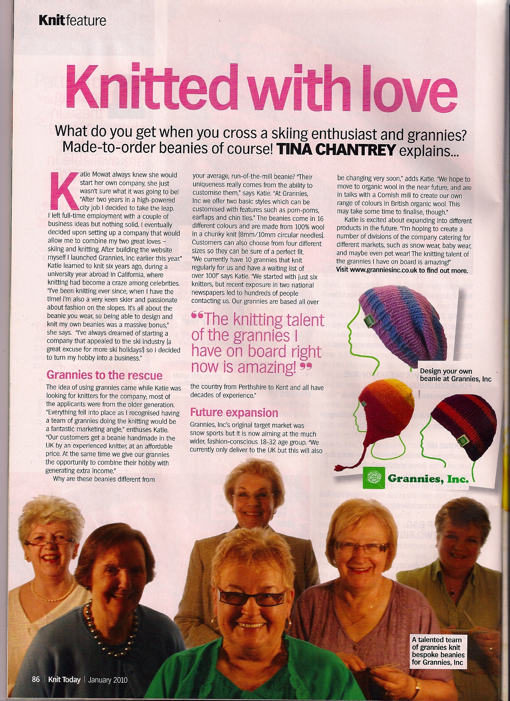 Grannies, Inc. are proud to announce that we'll be knitting the official beanies for the main sponsor of the Freeride World Tour 2010, Nissan. Our team of star grannies will be knitting furiously to produce an exclusive range of FWT beanies to keep Nissan's staff and team of freeride athletes warm on tour, including Big name European riders such as Xavier de le Rue and Aur�lien Ducroz.